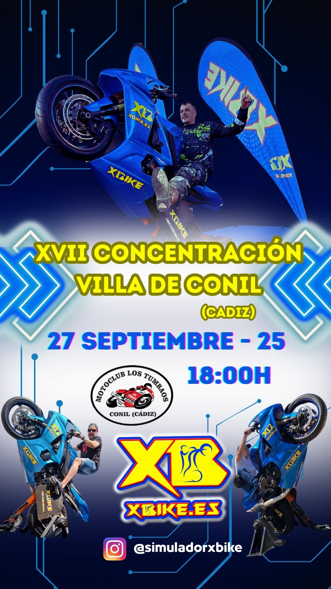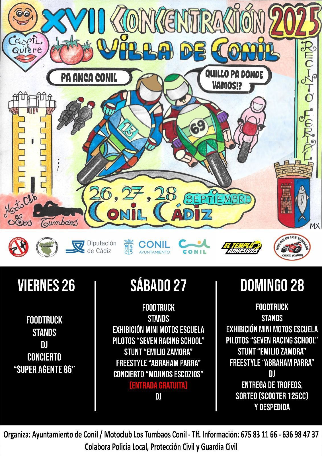 Este año estamos súper felices porque estaremos en una de las concentraciones moteras más importantes de toda España, una de las más especiales, cargadas de actividades y en una zona espectacular… Hablamos de la concentración motera de Conil de la Frontera – Cádiz!! Los próximos días 27 y 28 de septiembre con dos pases de Stunt…. uno el sábado a las 16’30h y otro el domingo día 28 a las 13’30h… y no te pierdas ninguno de los dos porque podrás disfrutar de cosas diferentes e importantes novedades!!